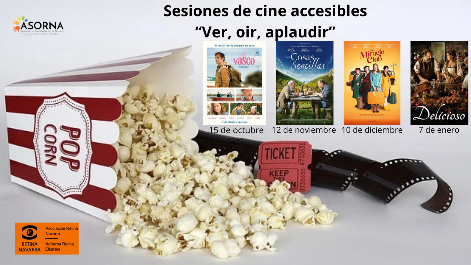 La asociación Retina Navarra organiza un ciclo de cine accesible llamado «Ver, oír, aplaudir». Todas las películas son accesibles con subtitulado para personas sordas y audiodescripción para personas ciegas o con baja visión. Las películas se proyectan en el Civivox Iturrama, c/ Esquiroz 24, Pamplona. MAPA ⌛ Hora: 19h Las próximas películas son: 15 de...Leer más